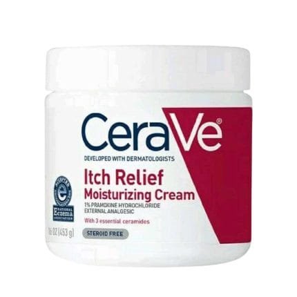 The skin-relief provided by CeraVe Itch Relief Moisturizing Cream effectively treats dryness and iritations which cause itchiness. The non-greasy rich dermatologist-developed cream starts working in less than 2 minutes to deliver relief that lasts for up to 8 hours. The product contains 1% pramoxine hydrochloride which offers quick temporary relief against eczema itch and also addresses insect bites and sunburns as well as minor skin irritation. Three essential ceramides (1, 3, and 6-II) appear in this formula to aid skin barrier recovery together with niacinamide that helps normalize skin irritation. The steroid-free cream comes without fragrance and it will not block pores thus making it suitable for everyday use on sensitive skin types.