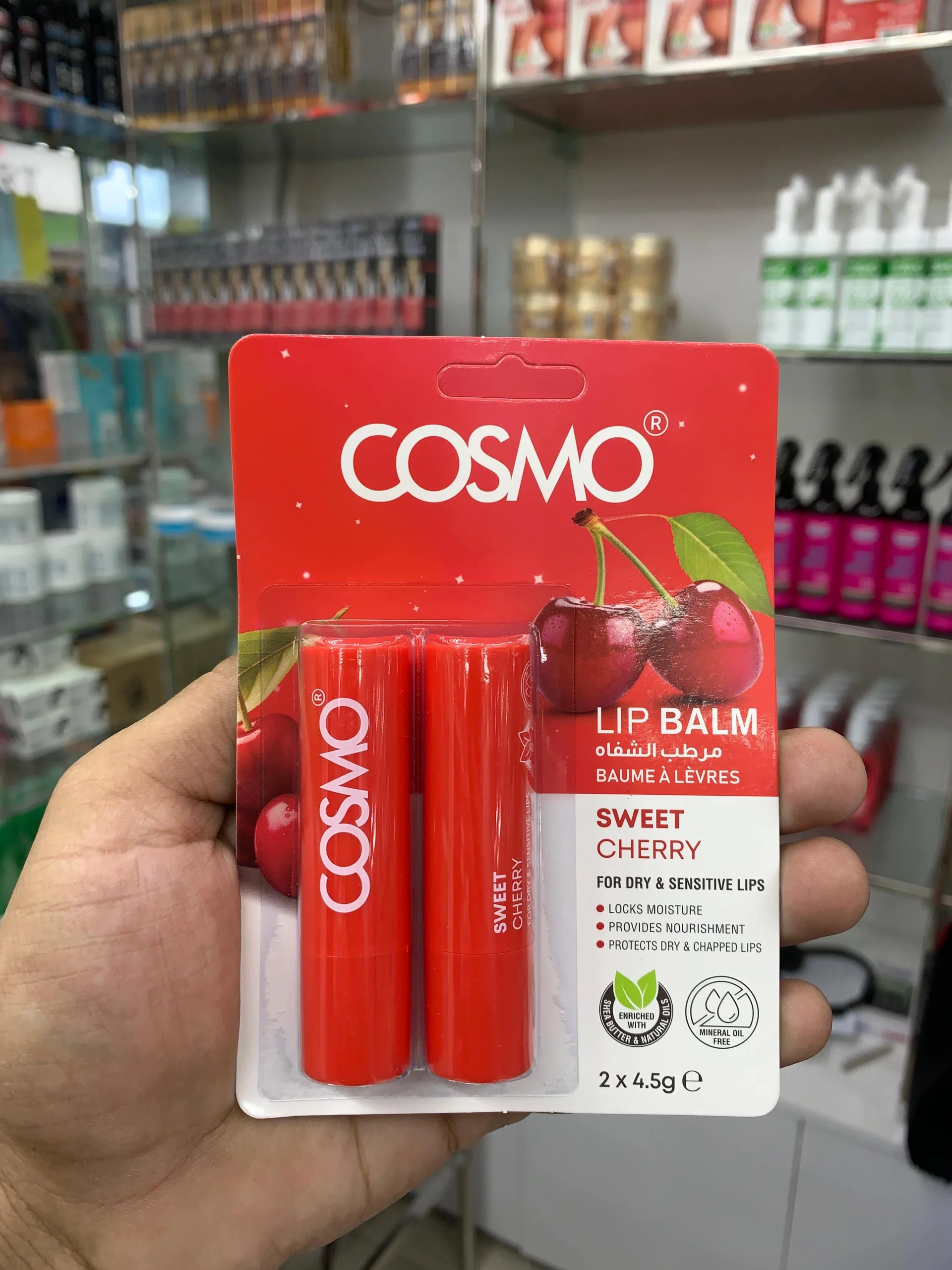 COSMO Sweet Cherry Lip Balm for Dry & Sensitive Lips (2 x 4.5g Sticks)