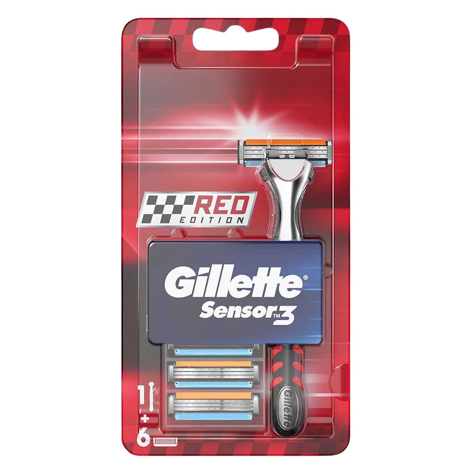 Gillette Sensor3 Razor + 6 Replacement Blades Red Edition